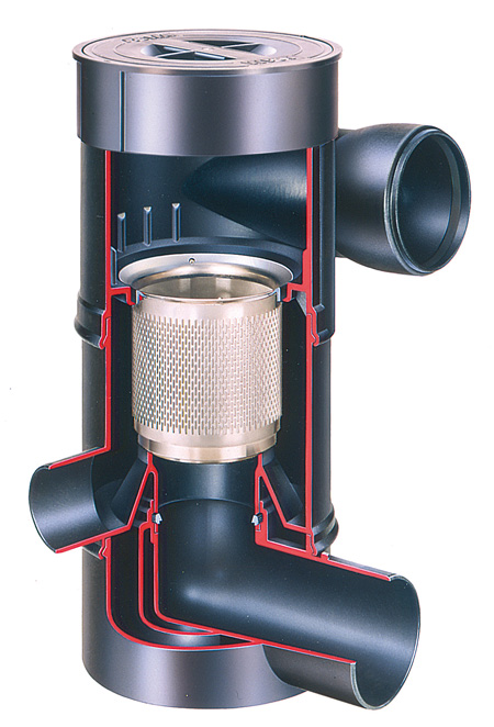 Solids such as leaves, moss or materials from production processes are simply flushed past the filter and washed away.